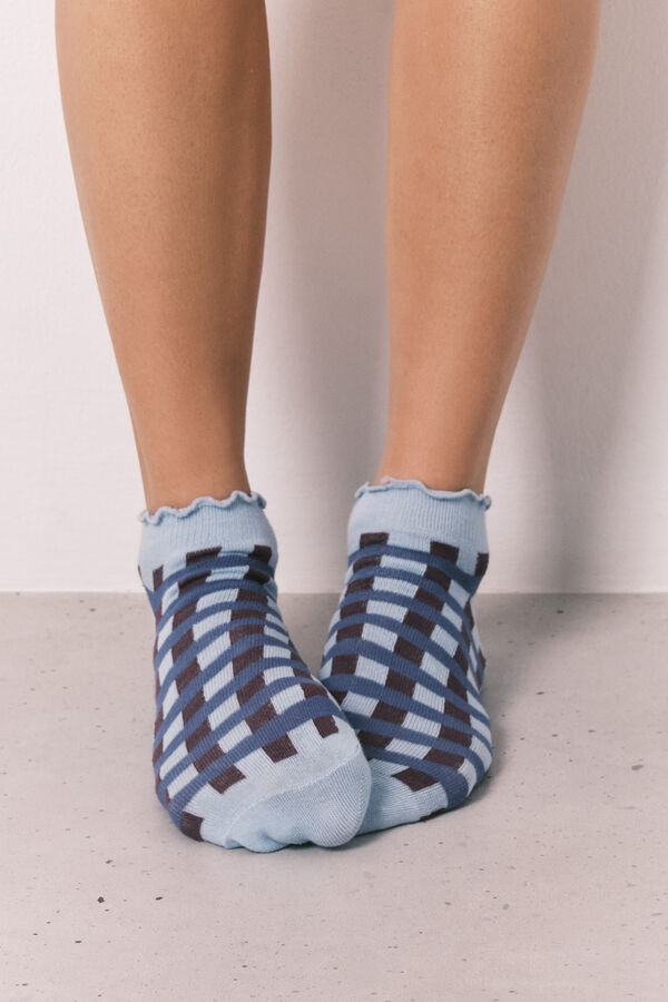 Calcetines cortos con estampado de cuadros y puños rizados, fabricados en algodón suave y elástico. Diseñado para ofrecer comodidad y estilo durante tus actividades diarias.