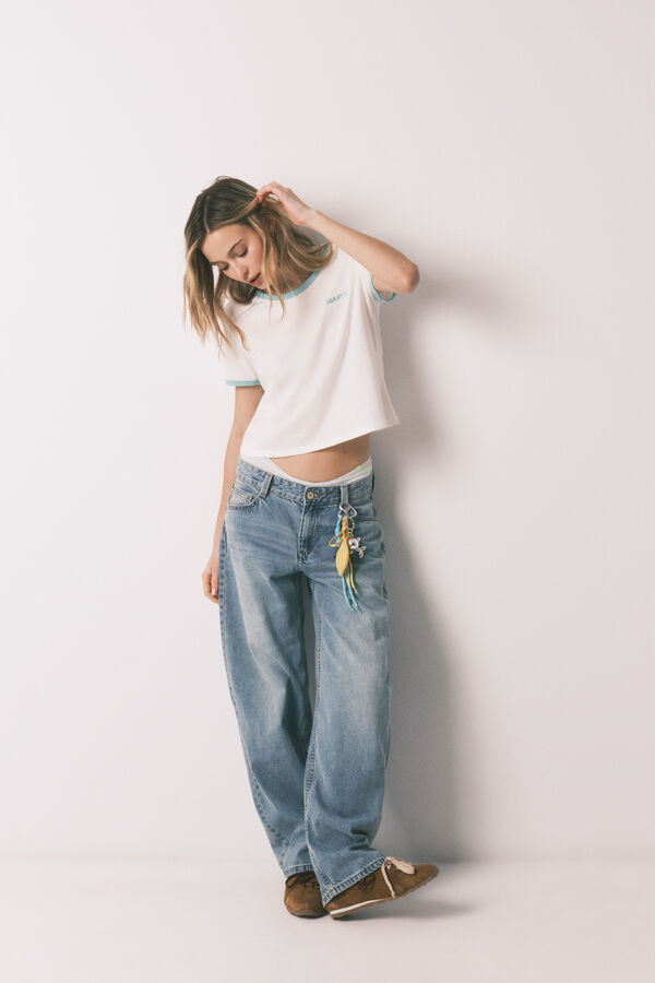 Camiseta lisa de manga corta, de tejido 100% algodón, con diseño de cuello, puños y logo en el pecho a contraste. Ideal para looks cómodos y estilizados. Llévatela con el pantalón a juego para hacerte con un total look sporty, súper tendencia. Wear a Happy Attitude!