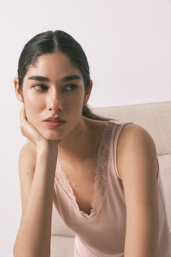 Camiseta interior sin mangas, lisa, en tejido de punto súper suave con mezcla de viscosa. Es tan práctica y cómoda, que no vas a querer quitártela en todo el día.