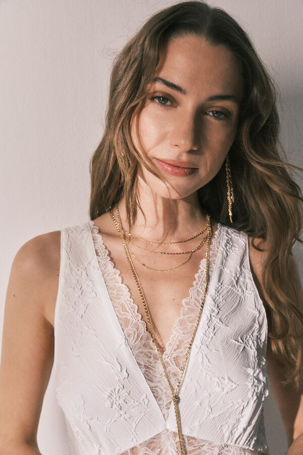 Camisón largo confeccionado en jacquard de satén. Ideal para dormir, estar en casa o para un look de noche pre o post boda.