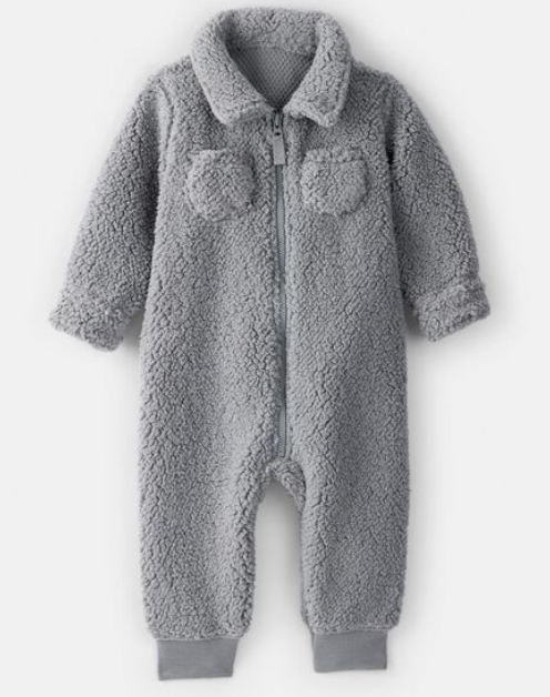 Carter's Baby Boy Sherpa Pocket Zip-Up Jumpsuit - Grey