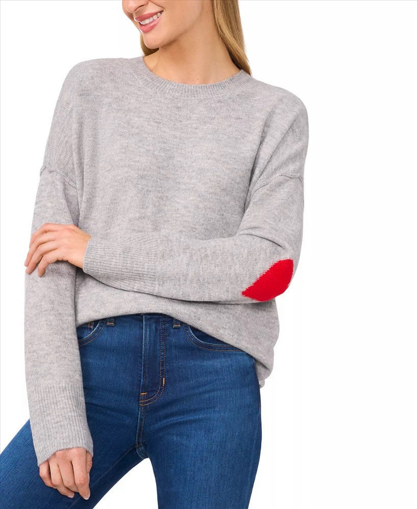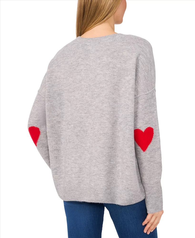 CeCe Women's Valentine's Crewneck Elbow Hearts Long-Sleeve Sweater