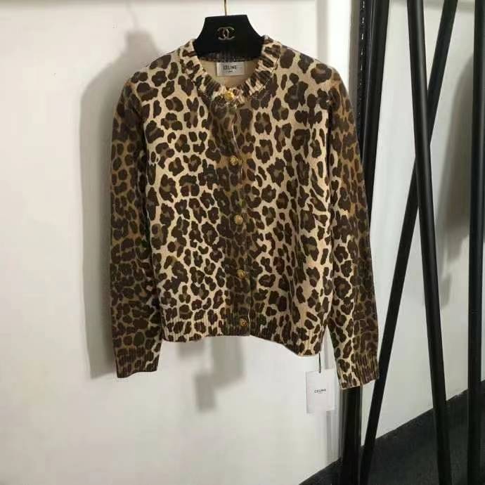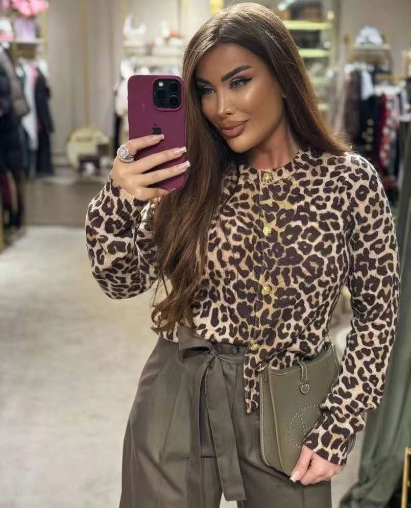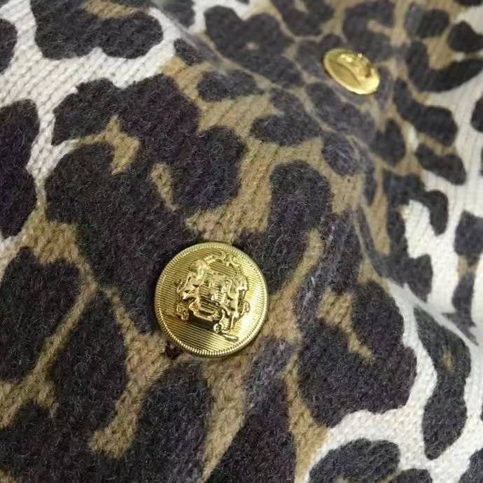 Celin* вязаный кардиган из 100% шерсти с леопардовым принтом, золотыми пуговицами и длинными рукавами, коричневый, SML, [размер S; ширина плеч 39, обхват груди 98, длина рукава 58, длина платья 55]