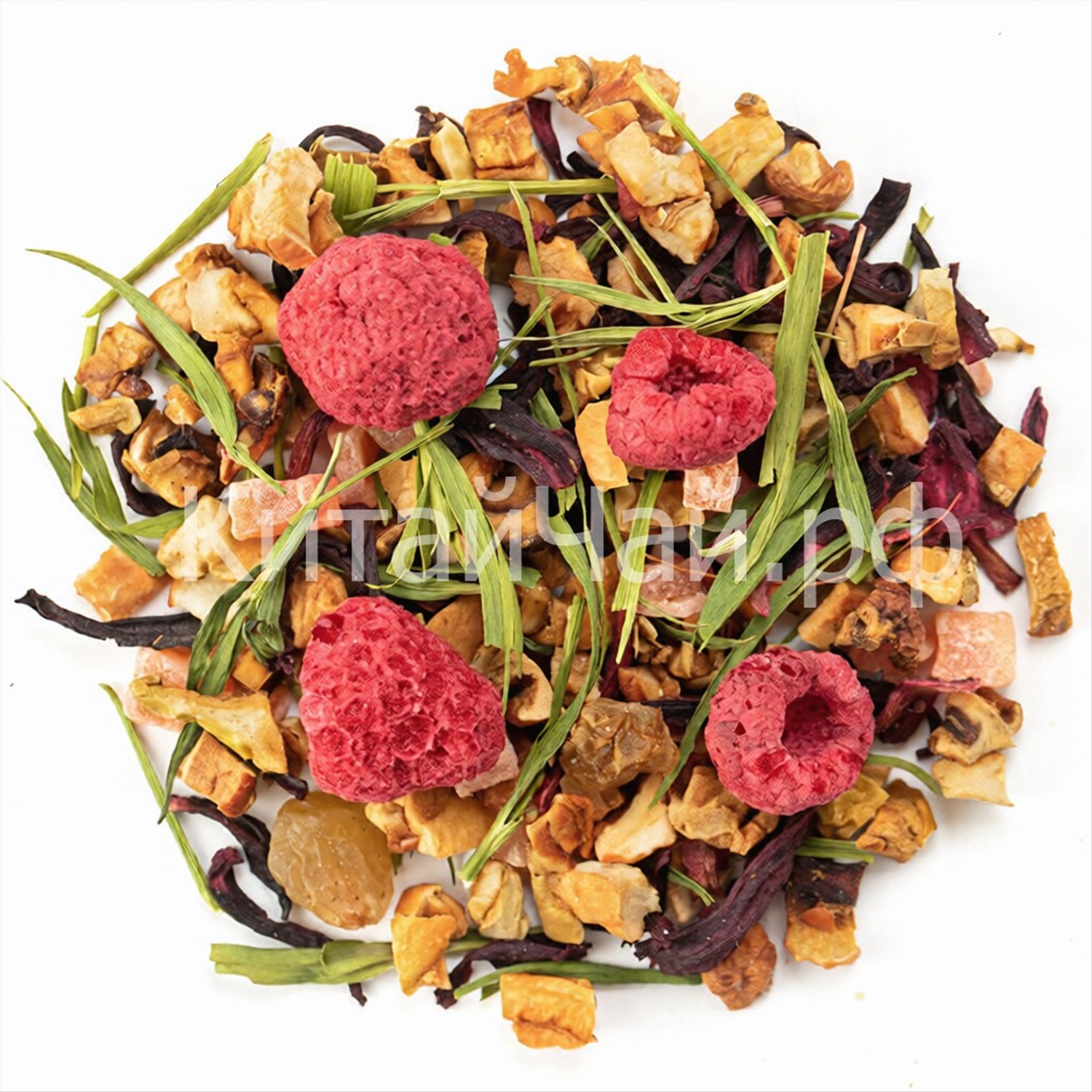 Каркаде, яблоко, кубики ананаса, изюм, листья бамбука, ягоды малины, аромат малины.
