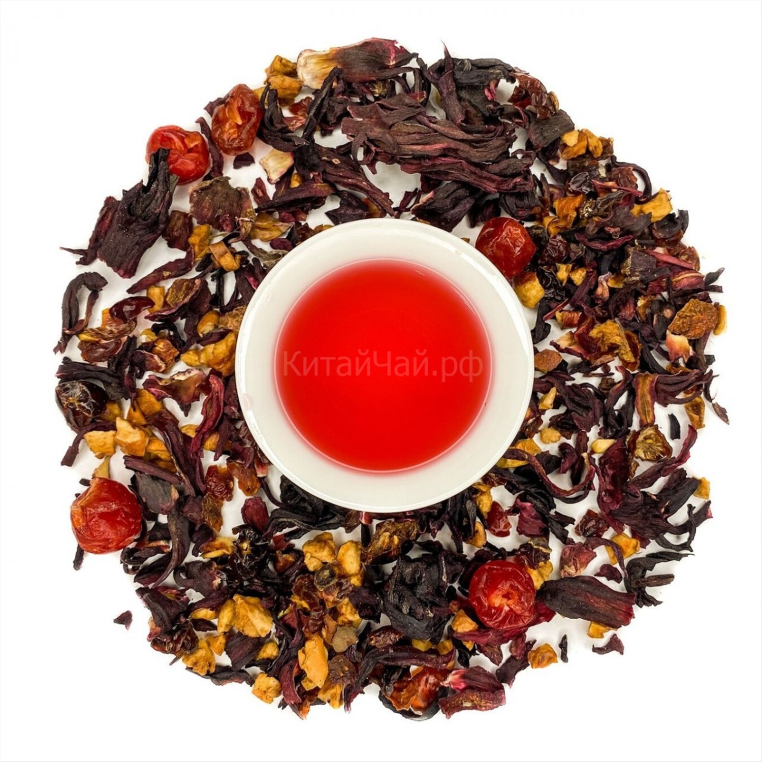 Гибискус, шиповник, яблоко, вишня. Ароматизирован натуральными маслами.