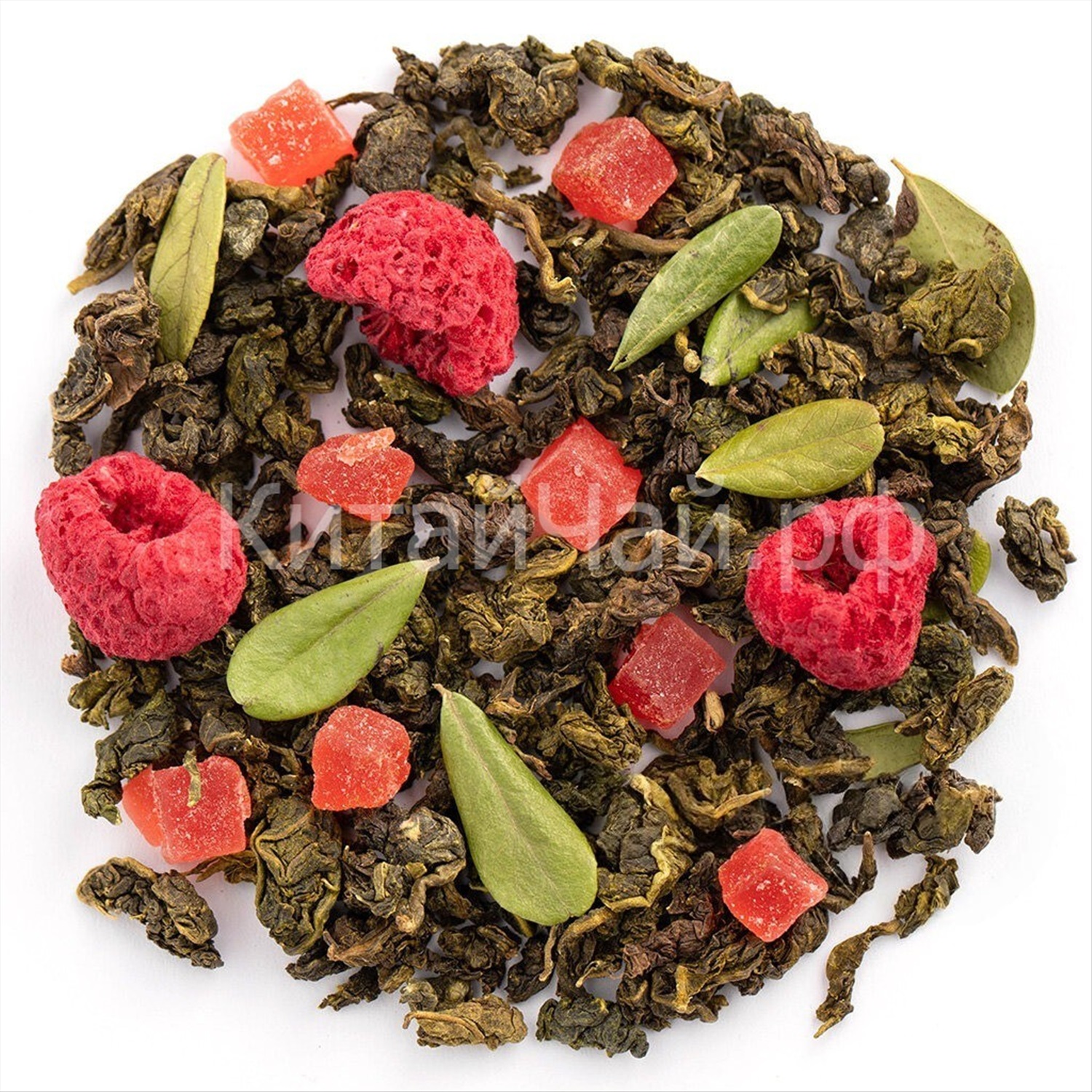 Китайский улун, цукаты ананаса, ягоды малины, листья брусники, аромат малинового сорбета.