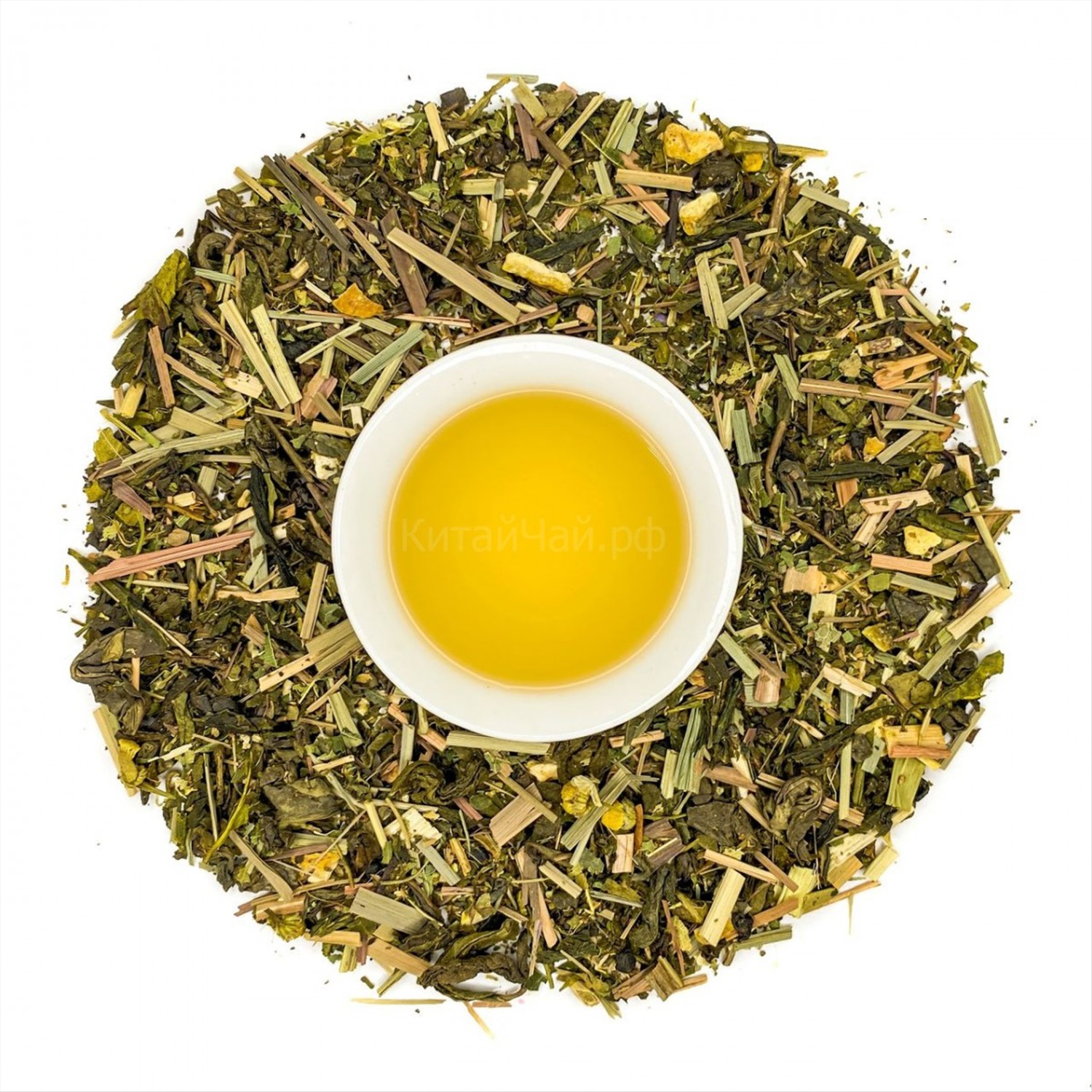 Сенча, лемонграсс, цедра лимона, ромашка, японская липа, аромат липы и цитруса.