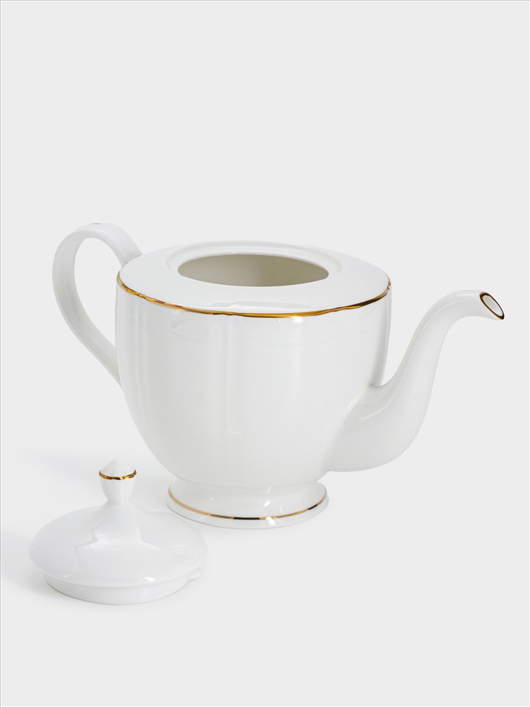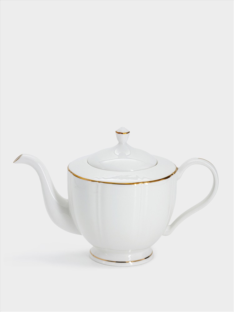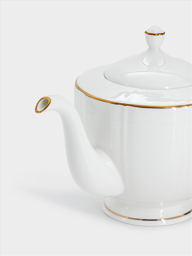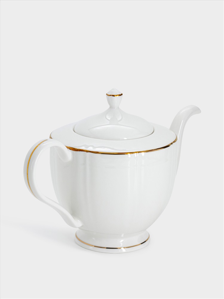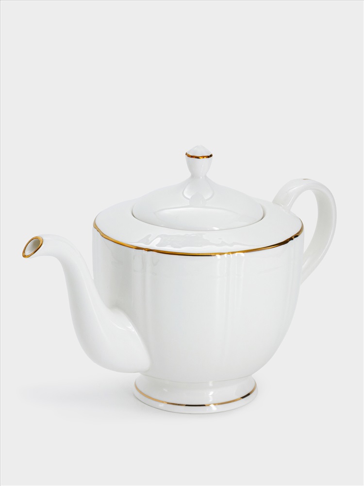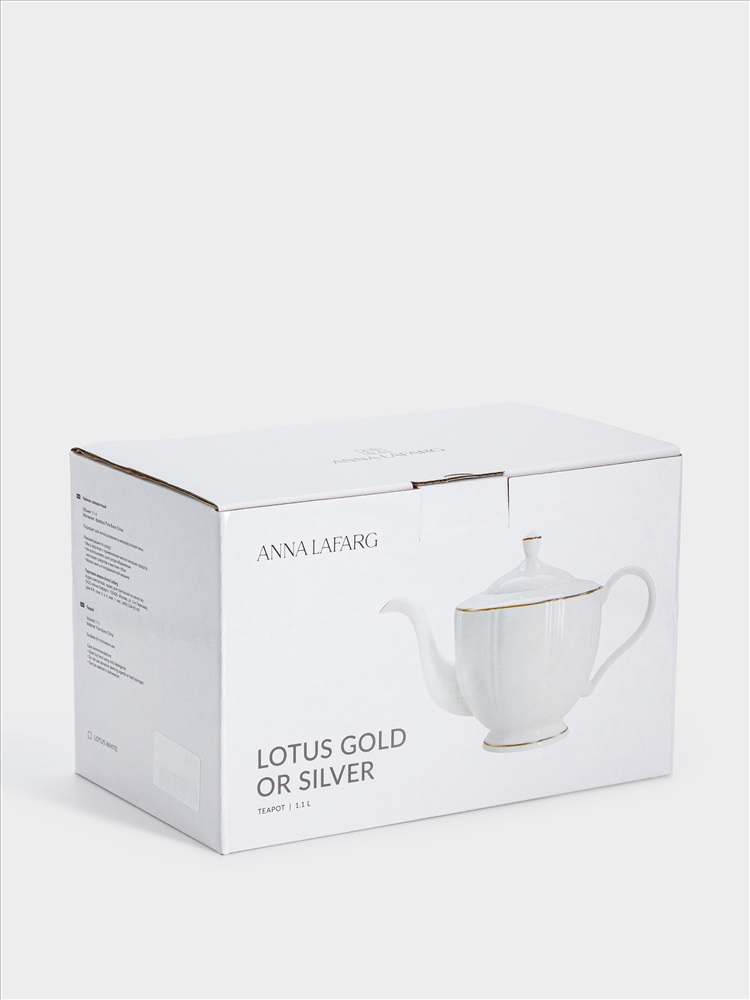 Чайник заварочный, 1,1 л, фарфор F, белый, с золотистым кантом, Lotus gold. Материал: фарфор Fine Bone China. Мыть тёплой водой с применением жидких моющих средств. Не использовать в СВЧ и в посудомоечной машине.