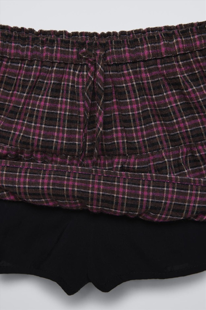 Bermuda skort with an elastic waistband and tie appliqué. Ruffle trims. COMPOSITION, CARE & ORIGIN COMPOSITION OUTER SHELL 45% cotton LINING 100% viscose Which contains at least: OUTER SHELL 21% RCS certified recycled polyester 45% RCS certified recycled cotton CERTIFIED MATERIALS RCS CERTIFIED RECYCLED POLYESTER Nowadays, recycled polyester is mainly made from PET plastic waste. This is a type of plastic that is widely used in a variety of items, such as plastic bottles. Using recycled materials helps limit the production of virgin polyester fibre. It is certified to the Recycled Claim Standard (RCS), which verifies the recycled content and tracks it from source to final product. Certified by Intertek 193341 More information RCS CERTIFIED RECYCLED COTTON This fibre is made from recycled cotton textile waste. Using recycled materials helps limit the consumption of raw materials. It is certified to the Recycled Claim Standard (RCS), which verifies the recycled content and tracks it from source to final product. Certified by Intertek 193341 More information CARE Caring for your clothes is caring for the environment. Lower temperature washes and delicate spin cycles are gentler on garments and help to protect the colour, shape and structure of the fabric. Furthermore, they reduce the amount of energy used in care processes.