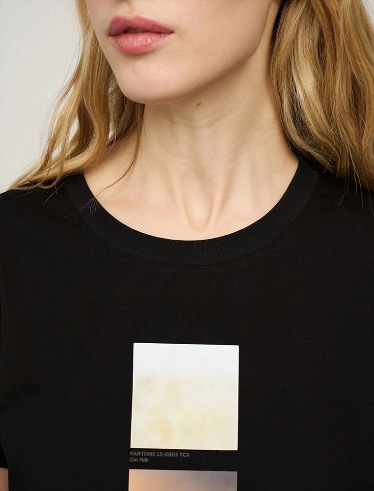 Видео: https-//hassfashion.ru/upload/iblock/46a/3bt8mlv0852xulzh3vsn1nfts8jrgsja.mp4 весна-лето 95% Хлопок, 5% Спандекс Футболка регулярного силуэта с короткими рукавами и круглой горловиной. Спереди находится принт. Выполнена из хлопка и спандекса, которые обеспечивают комфорт и износостойкость материала. Представлена в белом и черном цвете.