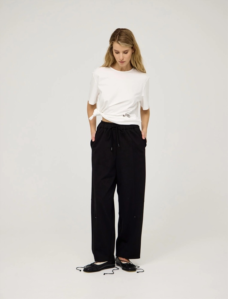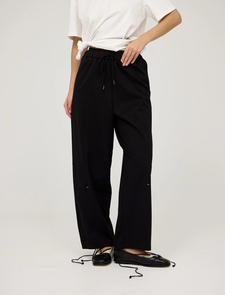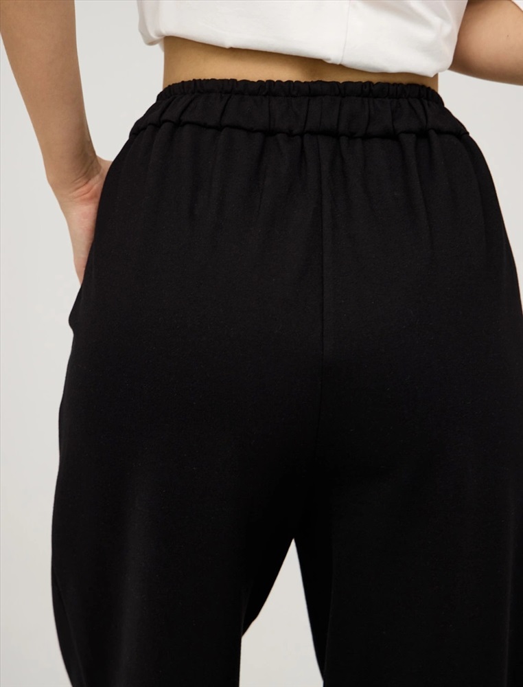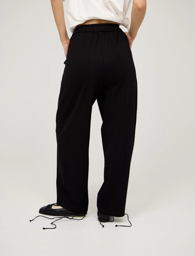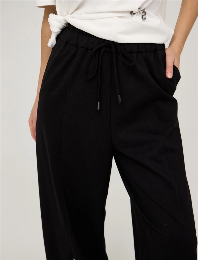 Черные брюки-баррель с закрепками