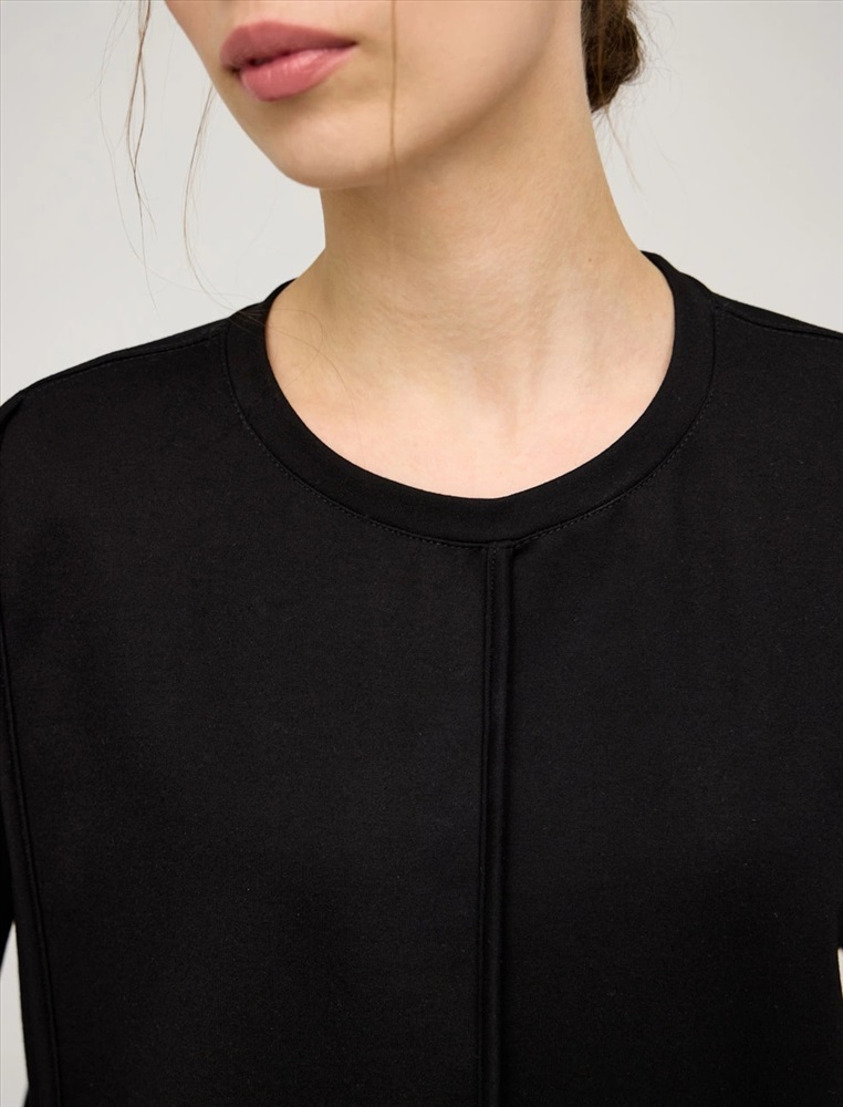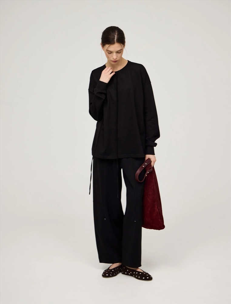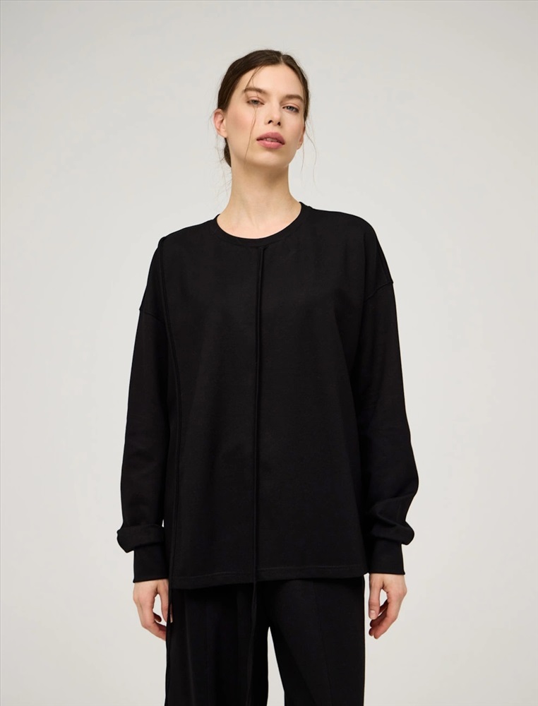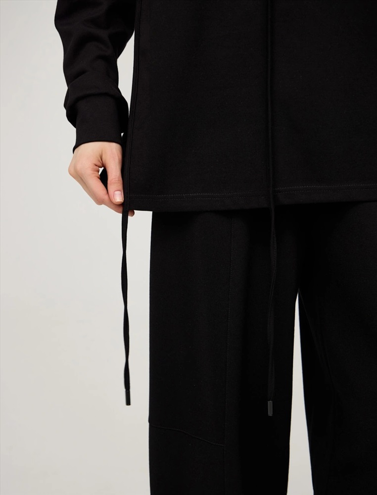 Видео: https-//hassfashion.ru/upload/iblock/191/92nnafewwn9r2qb42090r1h0140i1b11.mp4 весна-лето 95% Хлопок, 5% Спандекс Свитшот оверсайз силуэта с круглой горловиной. Линия плеча спущена. Модель дополнена двумя рельефными швами, переходящими в функциональные шнуры для создания современного силуэта. Эта декоративная деталь визуально удлиняет силуэт и добавляет лаконичности образу. Выполнен из хлопка (95%) и спандекса, что обеспечивает комфорт и долговечность. Представлен в черном цвете.