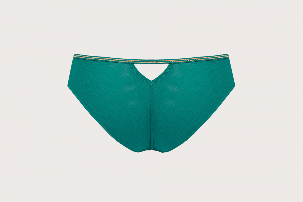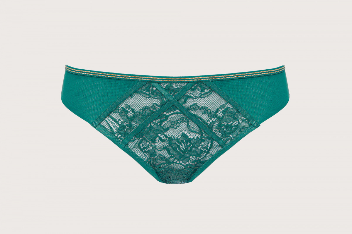 Состав: полиамид 75%, эластан 10%, полиэстер 10%, хлопок 5% Трусики бразильяна из коллекции Chiara выполнены в насыщенном летнем зелёном цвете с глубокими голубыми оттенками из кружевного полотна, продублированного телесной сеткой, спинка из сетки, сложенной вдвое, с V-образным вырезом. Ластовица проложена 100% хлопком. Золотая люрексовая нить проходит через всю коллекцию, добавляя ей утончённого блеска и благородства. Комментарии к товару