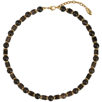 Изготовлено из ювелирного сплава на основе латуни с гальваническим покрытием золотом. Изделие украшает раухтопаз диаметром 6-8мм. Длина колье 40см. Замок-карабин с удлинителем 5см.