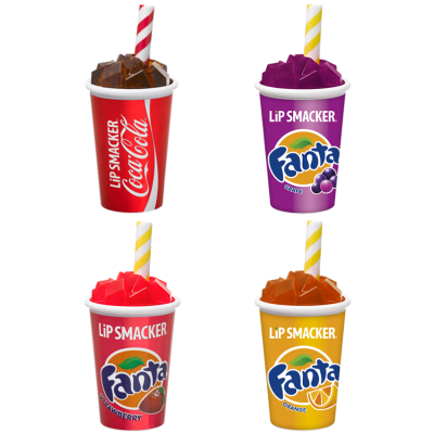 Quench your thirst with a Coke & Fanta Cup lip balms! Twist open and open your senses to the world of Coca-Cola. The dome-shaped lip balm delivers the authentic taste of your favorite sodas while providing extended hydration to your lips. The iconic fountain cup design is sure to make an impression whenever you use it! Flavors include: Coca-Cola, Fanta Grape, Fanta Orange and Fanta Strawberry.
