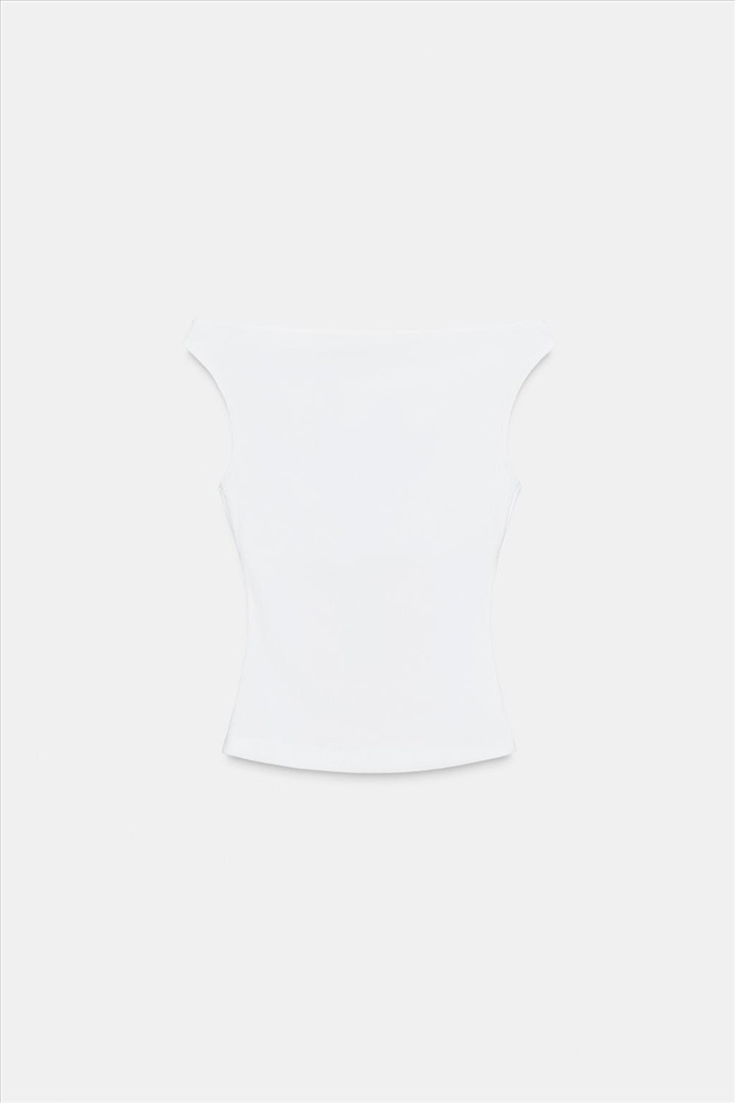 COLD SHOULDER RIBBED T-SHIRT
