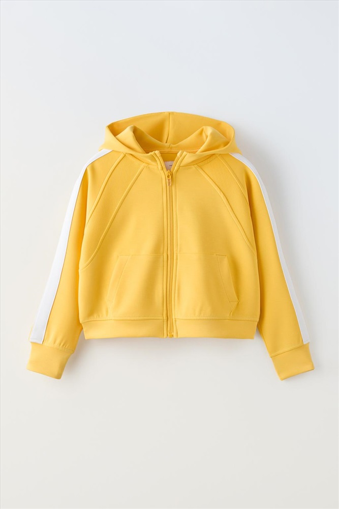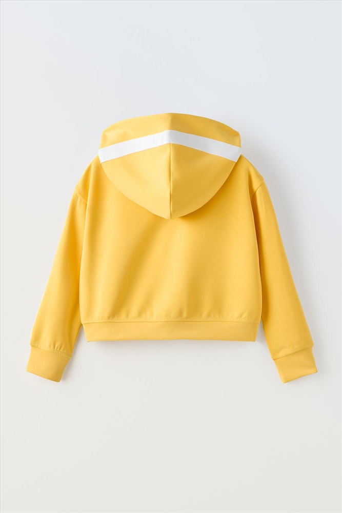 Hooded jacket with long sleeves. Zip-up front. Front pouch pockets. Contrast-coloured stripe detail on the sleeves. COMPOSITION, CARE & ORIGIN COMPOSITION OUTER SHELL 49% polyester LINING 49% polyester Which contains at least: OUTER SHELL 49% RCS certified recycled polyester LINING 49% RCS certified recycled polyester CERTIFIED MATERIALS RCS CERTIFIED RECYCLED POLYESTER Nowadays, recycled polyester is mainly made from PET plastic waste. This is a type of plastic that is widely used in a variety of items, such as plastic bottles. Using recycled materials helps limit the production of virgin polyester fibre. It is certified to the Recycled Claim Standard (RCS), which verifies the recycled content and tracks it from source to final product. Certified by Intertek 193341 More information CARE Caring for your clothes is caring for the environment. To keep your jackets and coats clean, you only need to freshen them up and go over them with a cloth or a clothes brush. This process is more gentle on fabrics and also reduces water and energy consumption when washing.