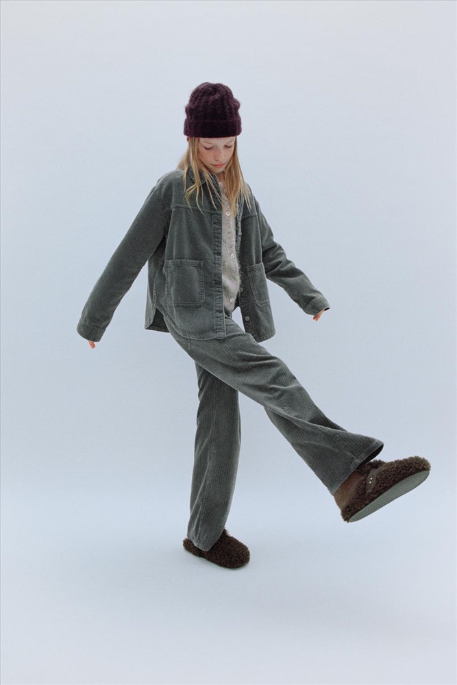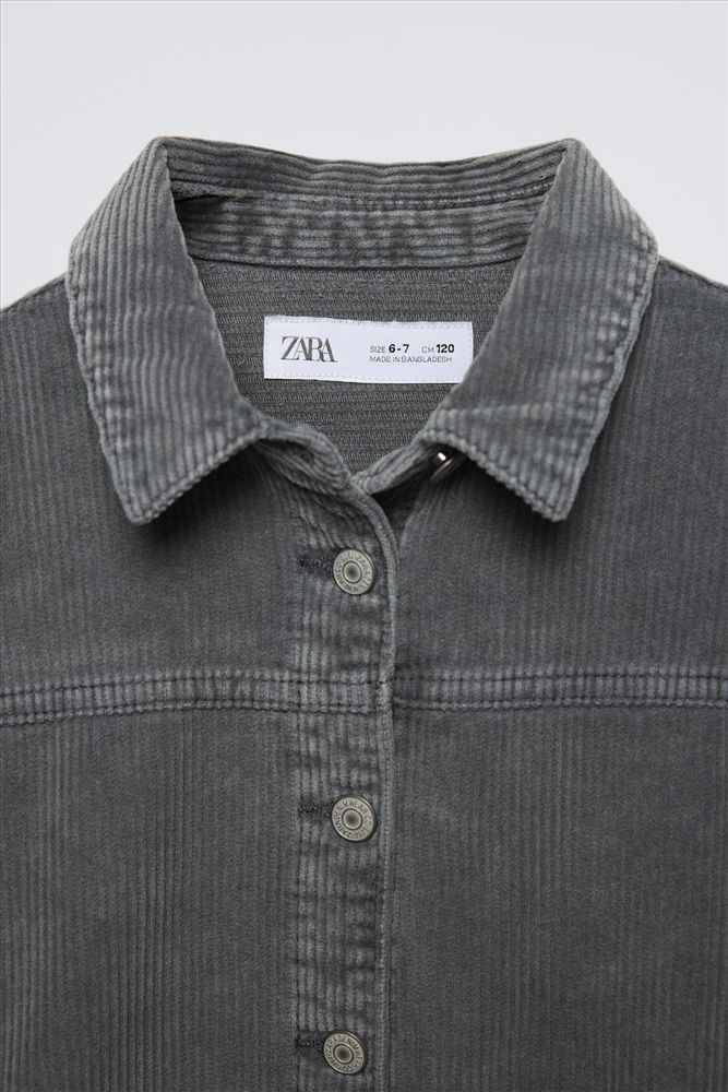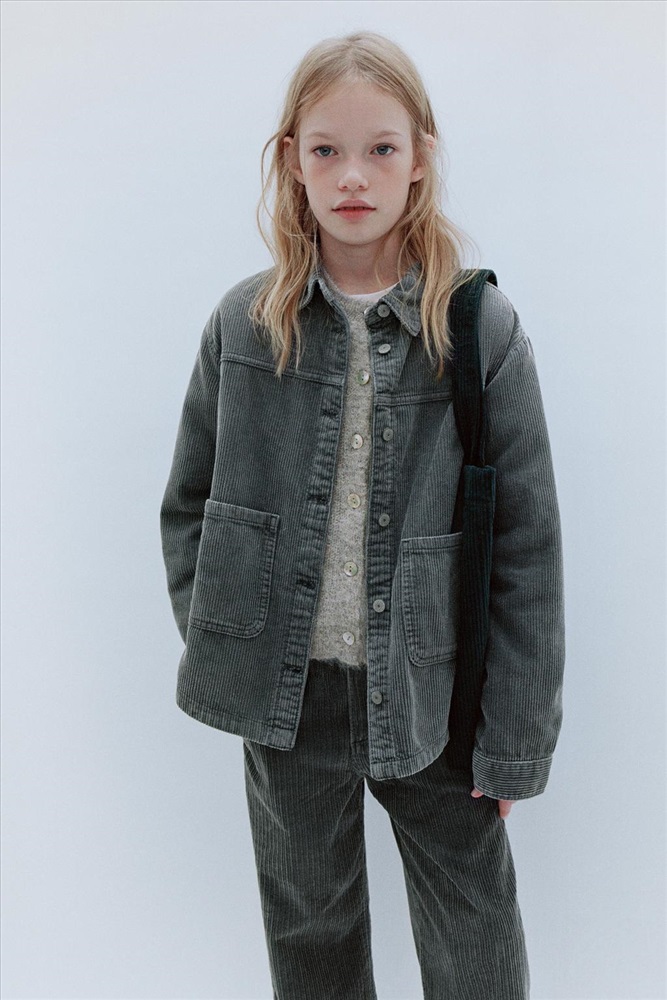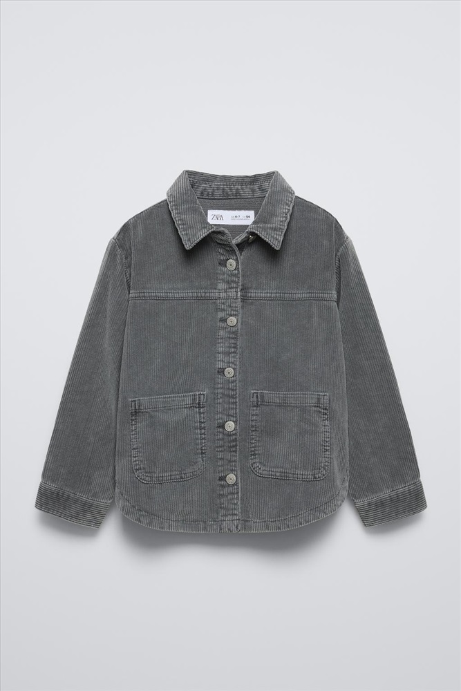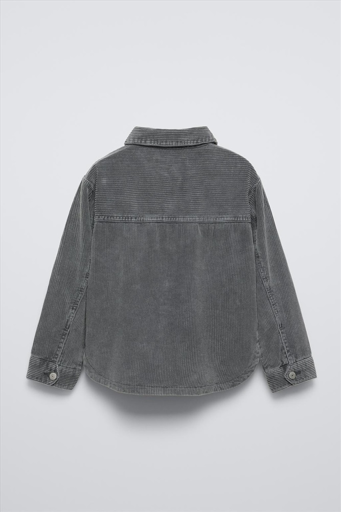 Corduroy overshirt with a shirt collar and long sleeves with button cuffs. Front button fastening and front patch pockets.
