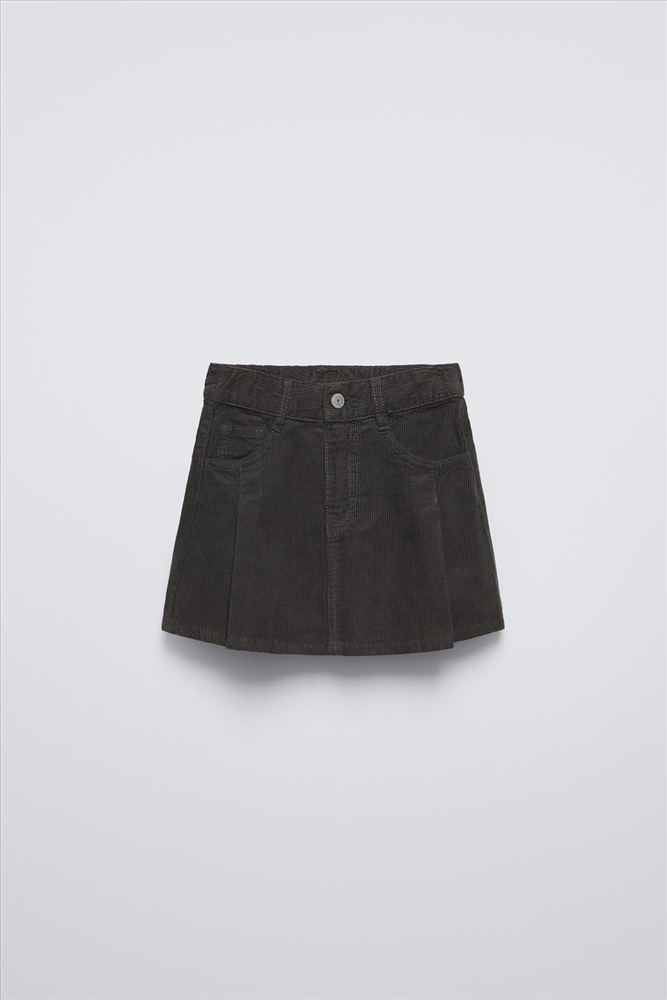 Skirt with an adjustable inner waistband and front button fastening. Front pockets. Featuring front pleats.