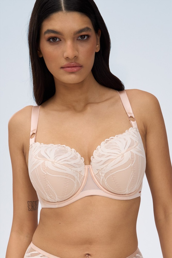 Состав: полиамид 70%, эластан 15%, хлопок 10%, полиэстер 5% Бюстгальтер CremeBrulee PU выполнен на основе бюста Glow PU на косточках (на каркасах), с дополнительными боковыми поддержками, чашки шитые, нижняя часть на тонком поролоне телесного цвета, с внешней стороны из кружева, внутренняя сторона проложена хлопковым трикотажем, верхняя часть кружевная, окантовка косточек на чашках декорирована атласной лентой, пояс из сетки продублирован эластичной телесной сеткой. Бретельки не отстёгиваются, регулируются по длине. На спине застёжка на удлинитель, количество крючков в ряду застёжки, увеличивается пропорционально размеру бюстгальтера, фурнитура металлическая цвета розового золота. Бюстгальтер идеально сочетается с трусиками CremeBrulee. Вдохновлённая культовым французским десертом, коллекция CremeBrulee сочетает в себе тёплые, ванильные оттенки кружева с мерцающим бежево-золотым атласом, чей блеск напоминает карамельную глазурь.
