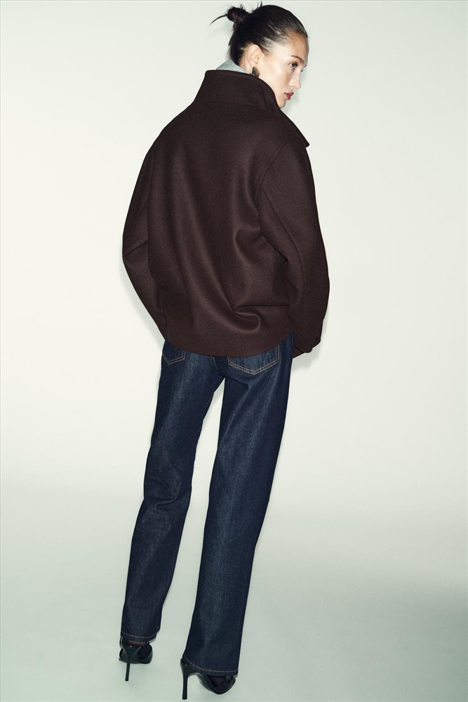Coat made of wool with a high neck and long sleeves. Featuring front welt pockets and double-breasted button fastening at the front. COMPOSITION, CARE & ORIGIN COMPOSITION OUTER SHELL 48% wool LINING 100% polyester Which contains at least: OUTER SHELL 48% RCS certified recycled wool 28% RCS certified recycled polyester 9% RCS certified recycled acrylic CERTIFIED MATERIALS RCS CERTIFIED RECYCLED WOOL This material is made from recycled textile waste and used garments. Transforming waste into new materials helps limit the extraction of raw materials. It is certified to the Recycled Claim Standard (RCS), which verifies the recycled content and tracks it from source to final product. Certified by Intertek 193341 More information RCS CERTIFIED RECYCLED POLYESTER Nowadays, recycled polyester is mainly made from PET plastic waste. This is a type of plastic that is widely used in a variety of items, such as plastic bottles. Using recycled materials helps limit the production of virgin polyester fibre. It is certified to the Recycled Claim Standard (RCS), which verifies the recycled content and tracks it from source to final product. Certified by Intertek 193341 More information RCS CERTIFIED RECYCLED ACRYLIC This material is made from recycled acrylic waste from other production processes. Transforming waste into new materials helps limit the extraction of raw materials. It is certified to the Recycled Claim Standard (RCS), which verifies the recycled content and tracks it from source to final product. Certified by Intertek 193341 More information CARE Caring for your garments to extend their useful life. To keep your jackets and coats clean, you only need to air them out and go over them with a cloth or a clothes brush. If you need to dry clean a garment, try to opt for technologies that use fewer polluting chemicals.