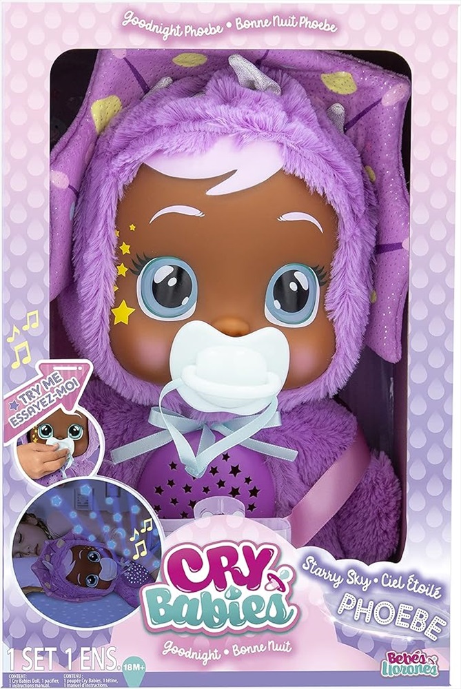 Cry Babies Goodnight Starry Sky Phoebe - 12" Sleepytime Baby Doll | Plays 5 Lullabies and Night Light Starry Sky Projection
