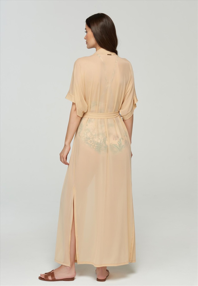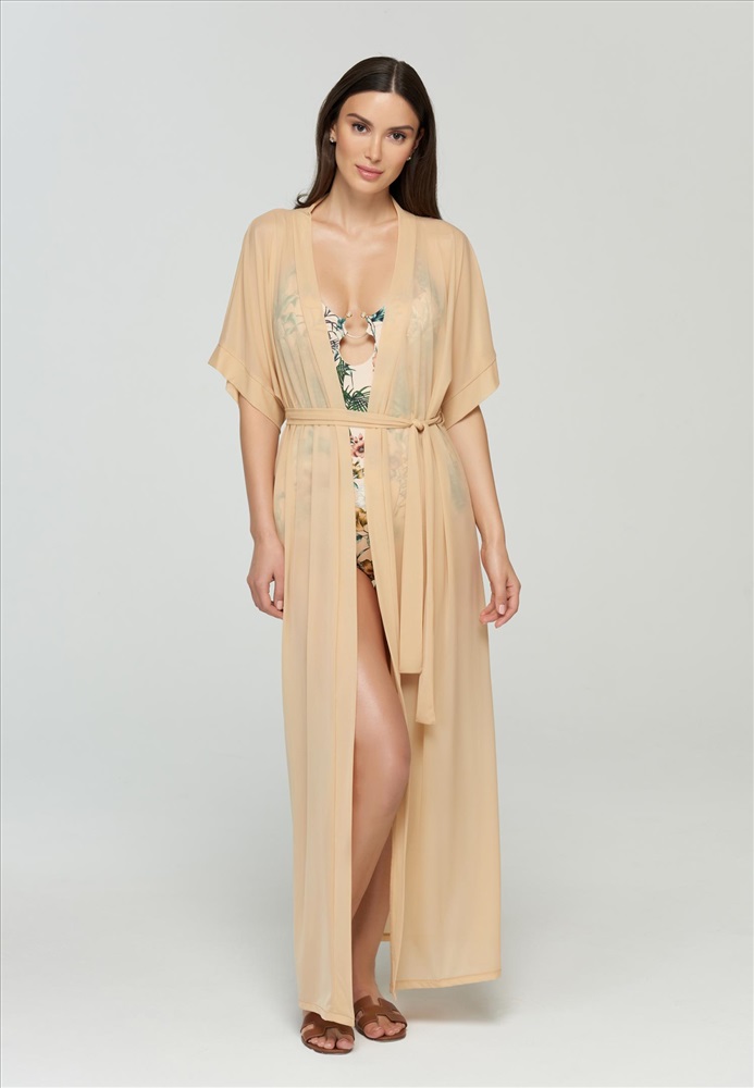 Туника макси из сетки-меш с боковыми разрезами. Съемный пояс.