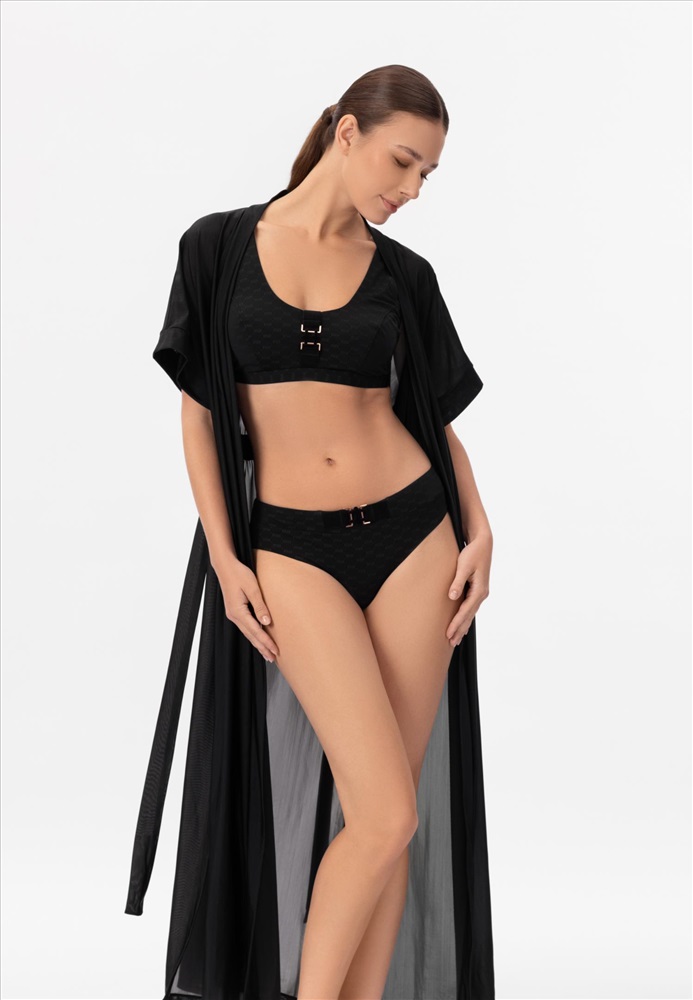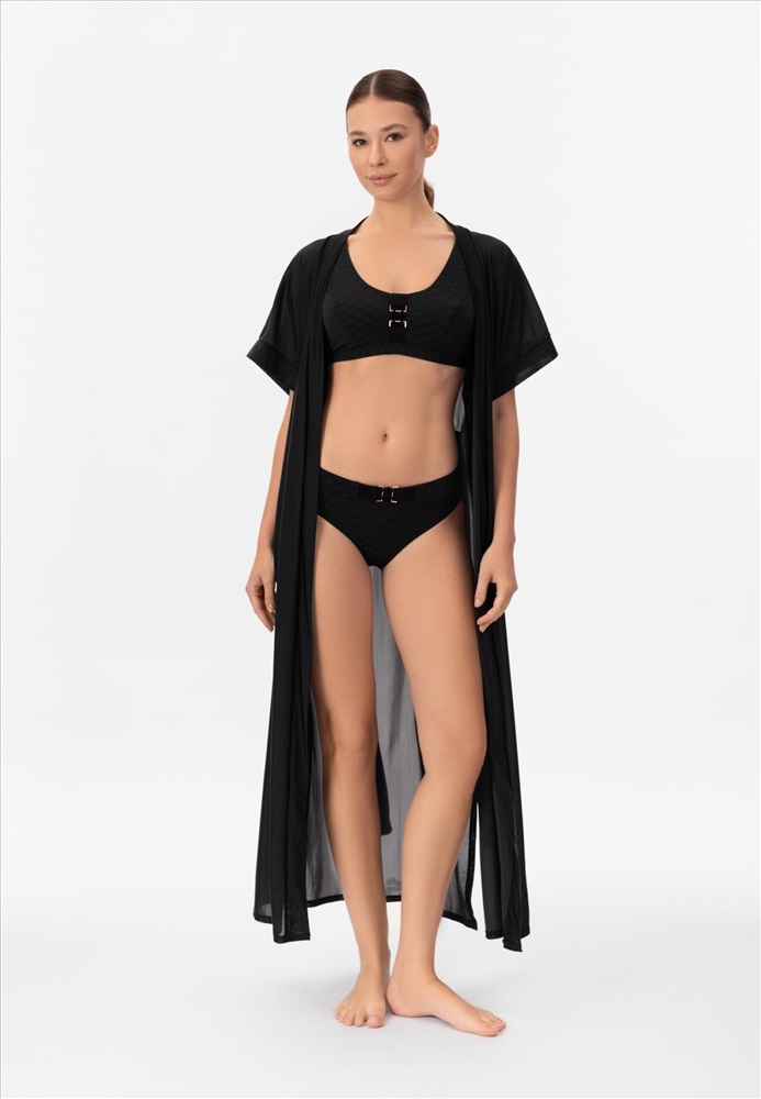 Туника макси из сетки-меш с деликатными вкраплениями тонкой металлизированной нити. Боковые разрезы. Не съемный пояс.