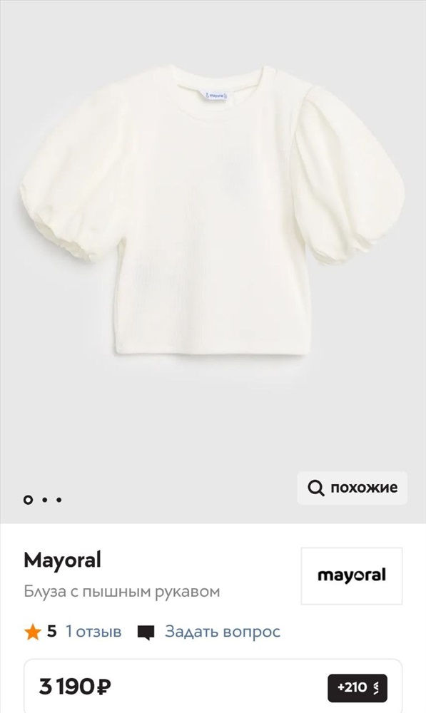 Детская блузка с пышными рукавами МАЙОРА*Л Материал: 48% полиэстер 45% хлопок 7% эластан