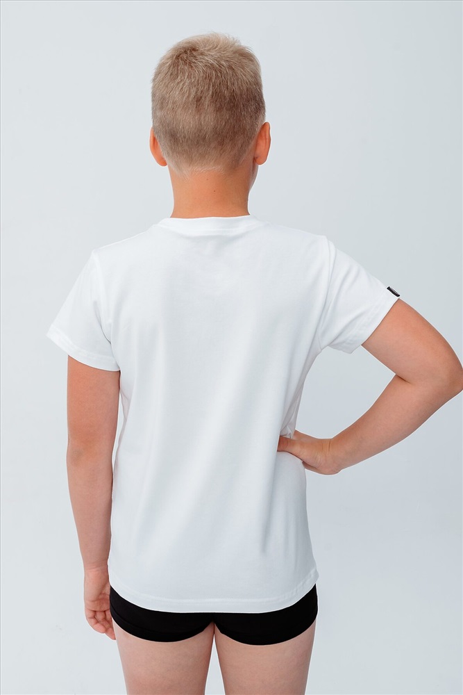Футболка детская изготовлена из мягкого хлопкового трикотажа качества пенье. Футболка однотонная полуприлегающего силуэта, длиной до середины линии бедер, с круглым вырезом горловины, коротким рукавом, полочка и спинка футболки прямые цельнокроеные. Удобный для ребенка крой не стесняет движения. В составе ткани есть эластомерные нити, это позволяет не вытягиваться в процессе носки и сохранять форму после стирки. Футболка изготовлена с соблюдением все норм, товар сертифицирован, экологичен и безопасен для детей. Пусть Ваши дети изучают мир в удобном для них белье).