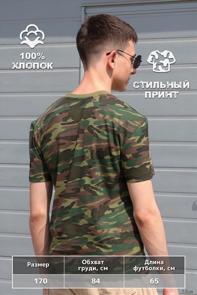 Камуфляжная футболка размера 170 выполнена из высококачественного 100% хлопка. Это идеальный выбор для тех, кто предпочитает стиль милитари и хочет выглядеть стильно и уверенно. Футболка имеет удобный крой и не стесняет движений, что делает ее идеальным выбором для занятий спортом или активного отдыха. Она также доступна в различных цветах и узорах, чтобы каждый мог выбрать то, что подходит именно ему. Для чего подходит ? Камуфляжную футболку можно использовать как для повседневных образов, так и для спортивных мероприятий. Она отлично сочетается с джинсами, спортивными штанами и другими элементами гардероба в стиле милитари. Кроме того, камуфляжная футболка - это универсальный подарок для мужчин и женщин любого возраста и стиля. На какой праздник подходит ? Камуфляжную футболку можно подарить на любой праздник - день рождения, Новый Год, 23 февраля или 8 марта. Она станет отличным подарком для любителей активного отдыха, рыбалки или охоты.