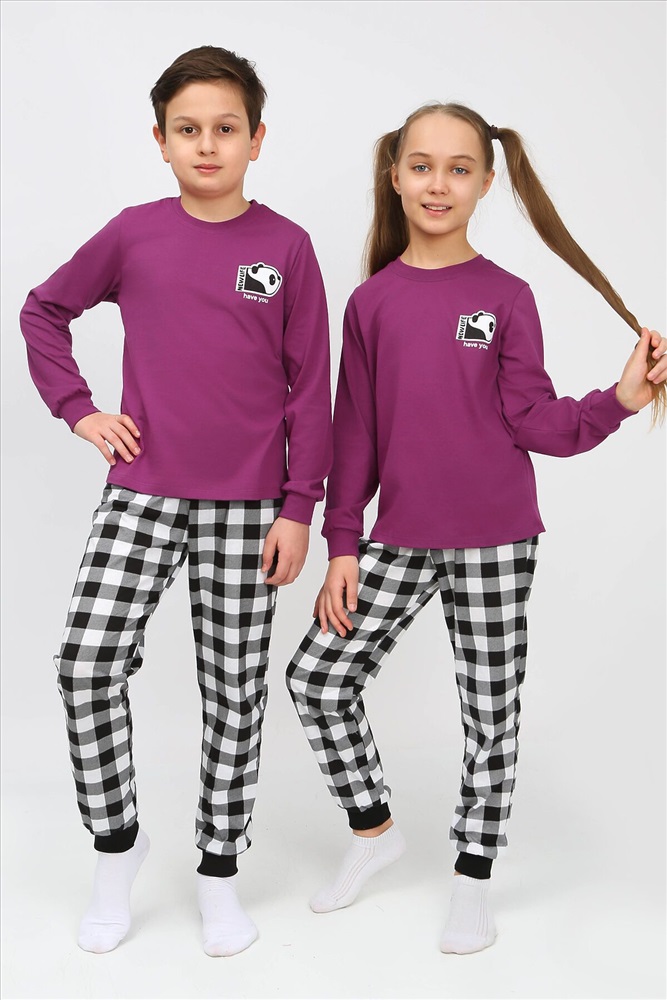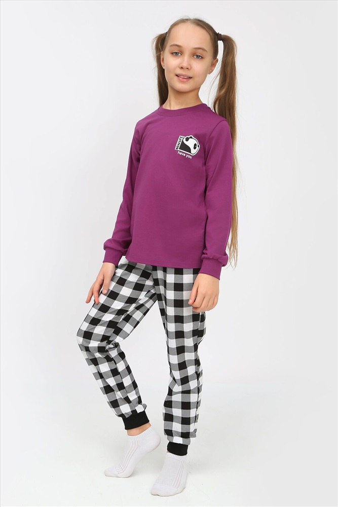 ID товара: 885622 Состав: 100% Хлопок Сезон: Демисезон Длина: Полная Фасон: Прямой Рукав: Длинные Декоративные элементы: Принт Основная ткань: Хлопок | Кулирка Страна бренда: Россия Страна производства: Россия Пижама для девочки, состоящая из футболки и брюк. Футболка прямого силуэта с втачным коротким рукавом. Горловина круглая, обработана воротником из кулирки. На полочке принт, шелкография с флуоресцентной краской. Брюки прямого покроя, из набивного полотна. Комментарии к товару