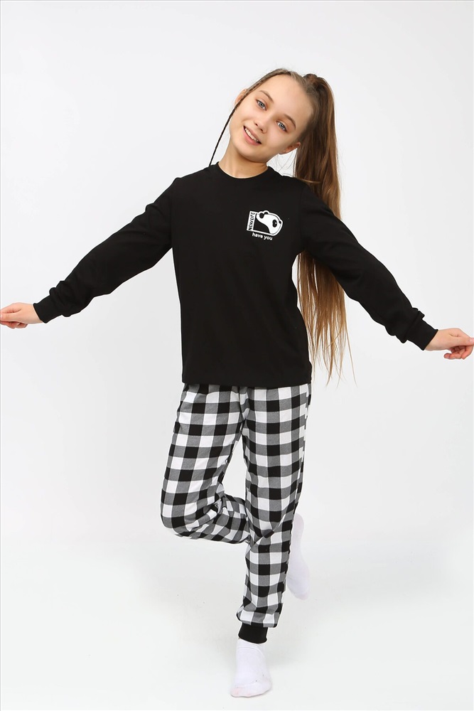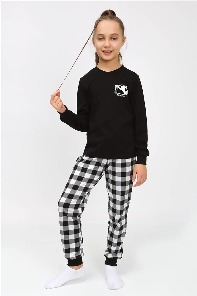 ID товара: 885623 Состав: 100% Хлопок Сезон: Демисезон Длина: Полная Фасон: Прямой Рукав: Длинные Декоративные элементы: Принт Основная ткань: Хлопок | Кулирка Страна бренда: Россия Страна производства: Россия Пижама для девочки, состоящая из футболки и брюк. Футболка прямого силуэта с втачным коротким рукавом. Горловина круглая, обработана воротником из кулирки. На полочке принт, шелкография с флуоресцентной краской. Брюки прямого покроя, из набивного полотна. Комментарии к товару