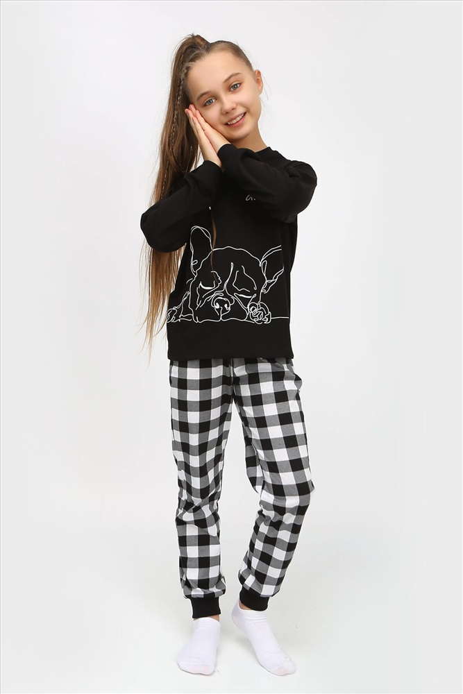 ID товара: 885628 Состав: 100% Хлопок Сезон: Демисезон Длина: Полная Фасон: Прямой Рукав: Длинные Декоративные элементы: Принт Основная ткань: Хлопок | Кулирка Страна бренда: Россия Страна производства: Россия Пижама детская, состоящая из джемпера и брюк. Джемпер прямого силуэта, с втачным длинным рукавом. Горловина круглая обработана воротником из рибаны. По низу рукавов манжеты из рибаны. Низ изделия обработан швом в подгибку. На полочке принт с флуоресцентной краской. Брюки прямого покроя, из набивного полотна. Пояс цельнокроенный, с эластичной тесьмой внутри. По низу изделия манжеты из рибаны. Комментарии к товару
