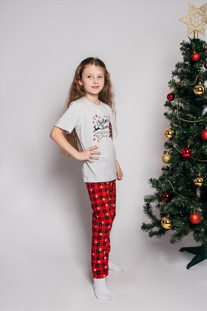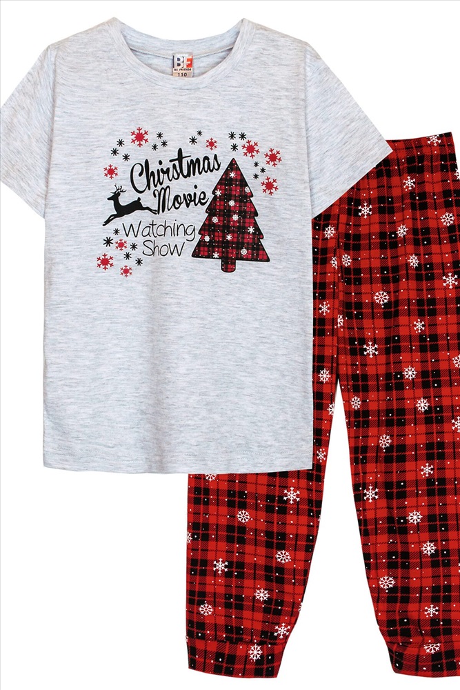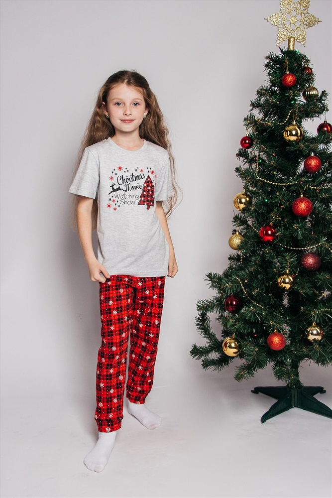 Детская новогодняя пижама (футболка с брюками). Прекрасный домашний костюм подойдет как для мальчика, так и для девочки! Пижама для Ваших любимых малышей из футболки с коротким рукавом и штанишек, которые заужены книзу, выполнены из мягкой хлопковой ткани. На полочке ПРИНТ (шелкография). Мягкие пижамы не садятся и сохраняют цвет после стирки. Мягкая резинка на поясе. Произведено в России.