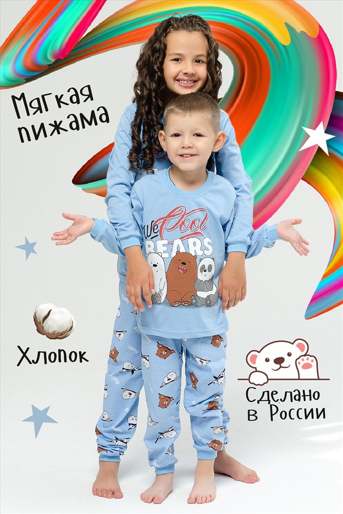 Страна производства: Россия Детская пижама из 100% хлопка в ярких тонах со стильными принтами. Длинный рукав.