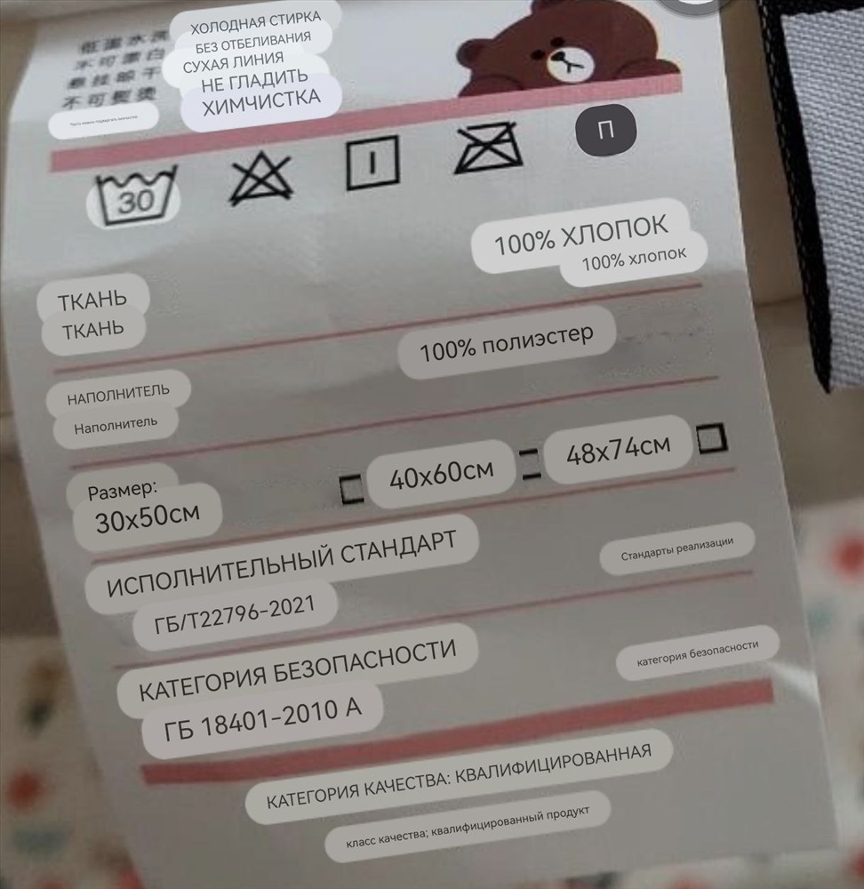 Материал: сверху хлопок, внутри наполнитель полиэстер Комментарии к товару