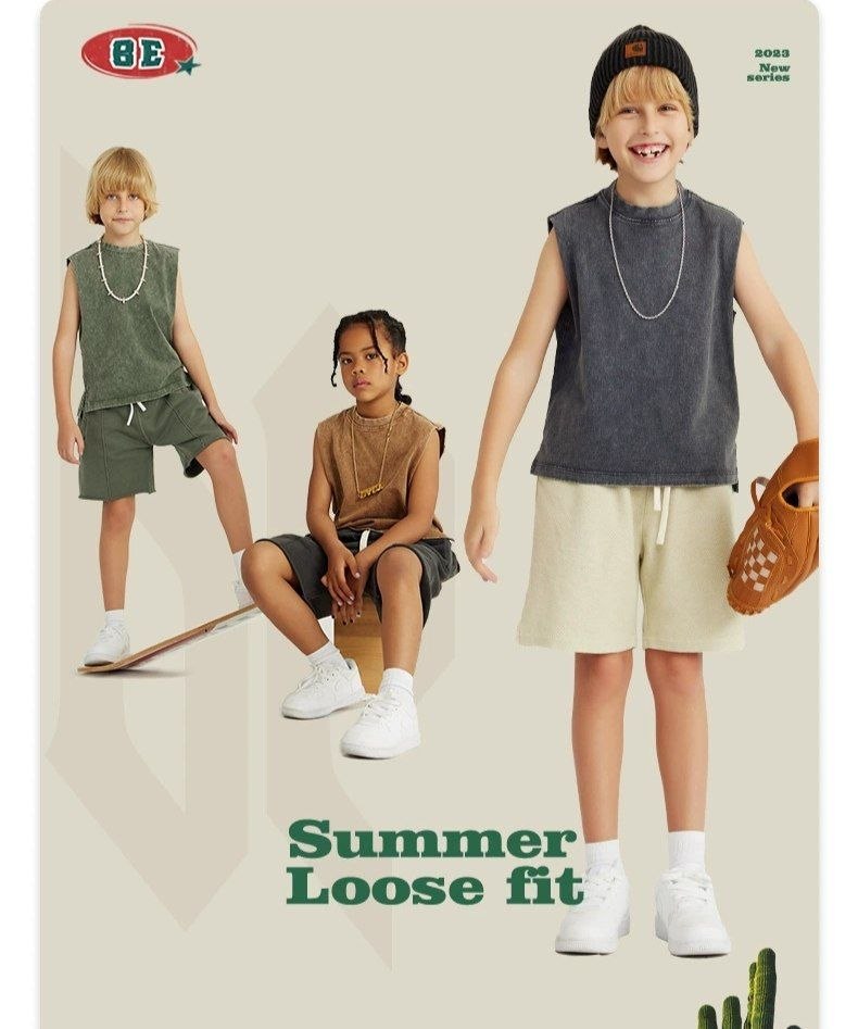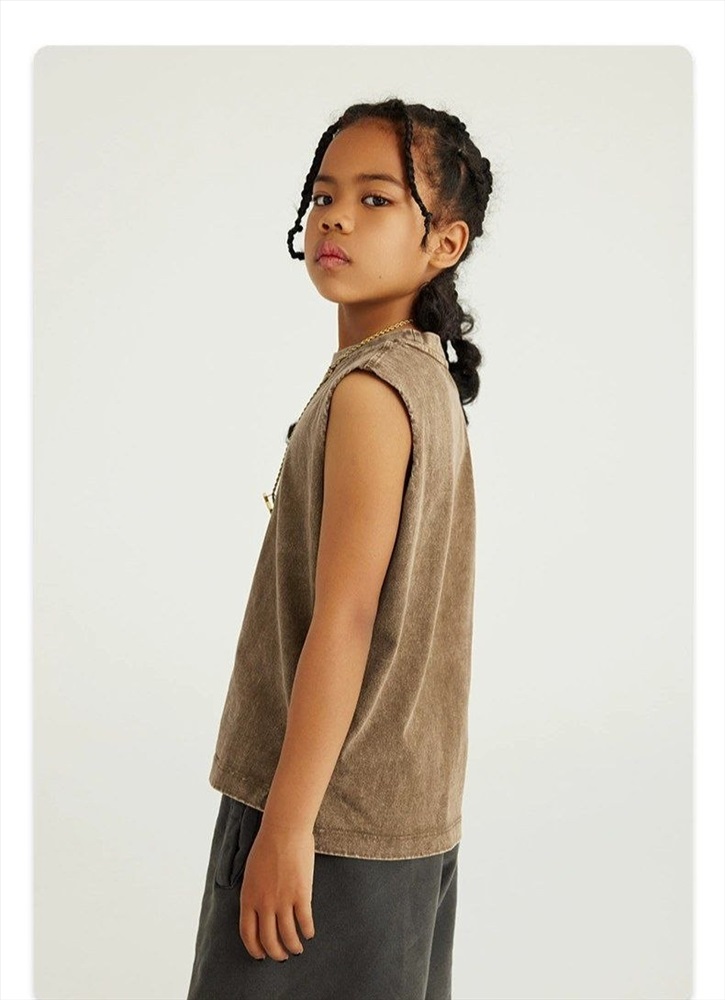 Детская свободная майка/ топ без рукавов для мальчиков с эффектом потёртостей Материал: 100% хлопок