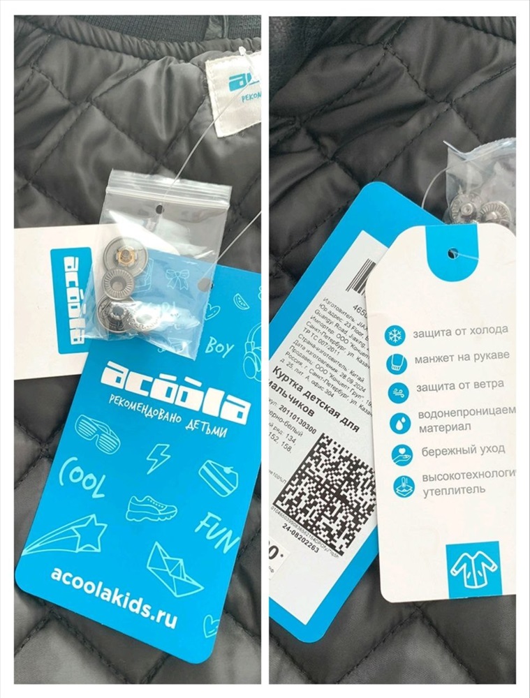Детская теплая куртка бомбер, экспорт в Россию АКУЛ*А Цена на бирке 6399₽