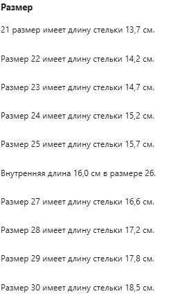 Размер: 21, 22, 23, 24, 25, 26, 27, 28, 29, 30