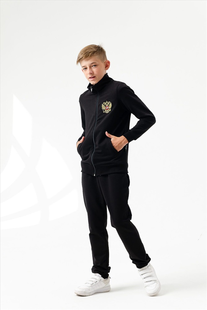 ID товара: 875400 Состав: 74% Хлопок, 21% Полиэстер, 5% Лайкра Сезон: Демисезон Длина: Полная Фасон: Прямой Рукав: длинные Вид застежки: Молния Крой брючин: Зауженный Тип карманов: В шве Основная ткань: Футер 2-х нитка Стиль: Спортивный Страна бренда: Россия Страна производства: Россия Стильный костюм детский с современным принтом. Используемая ткань легкая, отлично пропускает воздух и позволяет коже дышать. На молнии. Комментарии к товару