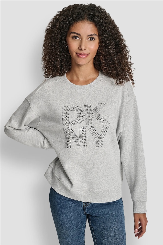 DKNY NEW YORK STACKED MIXED RHINESTONE LOGO SWEATSHIRT