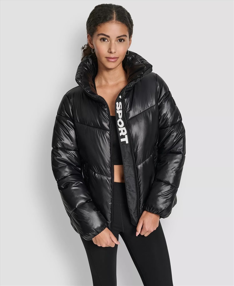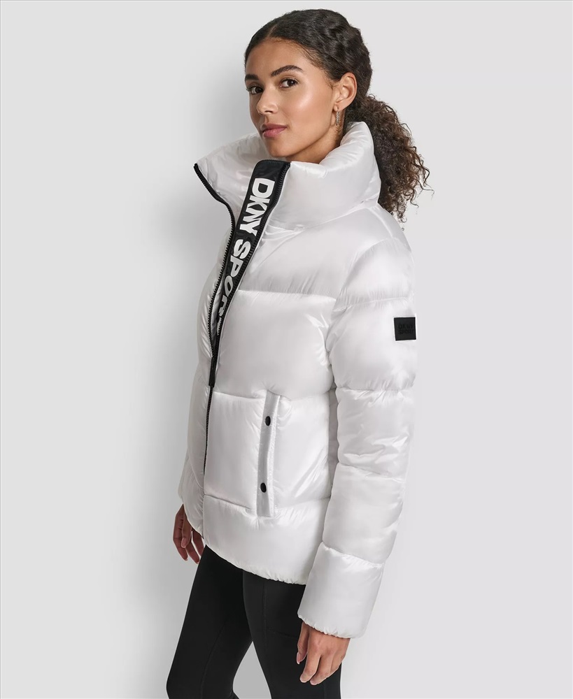 DKNY Women's Quilted Puffer Interior Placket Logo Jacket