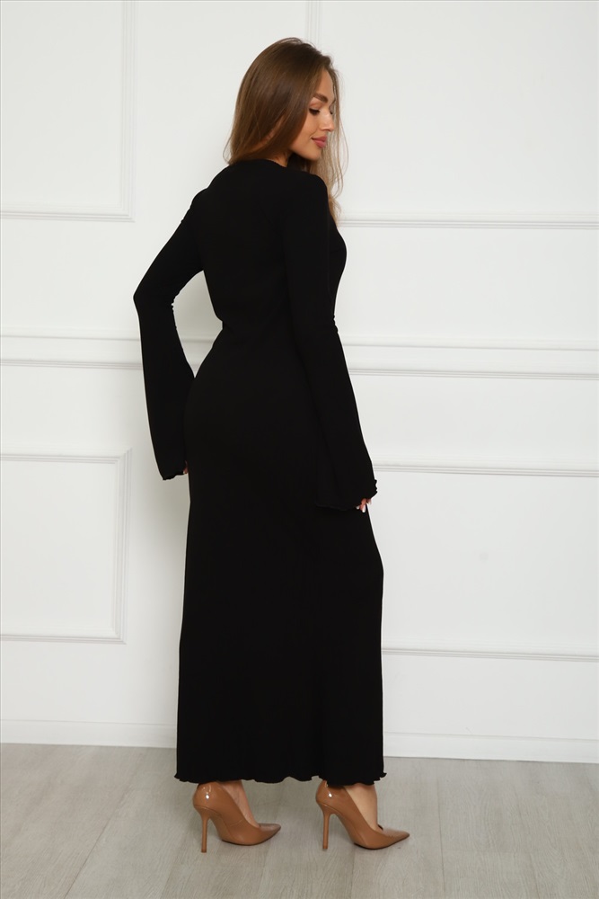 Застежка: без застежки Женское обтягивающее трикотажное платье лапша это роскошная универсальная модель для стильного и трендового образа. С длиной в пол оно идеально подходит как для повседневного использования в демисезонное время, так и для вечерних мероприятий летом или поход в ресторан на свидание зимним вечером. Стильный приталенный крой обрамляет фигуру, а утягивающие завязки придают стройный женственный силуэт, сочетая в себе нежность и элегантность. Этот модный наряд со шнуровкой отлично сочетается с различными аксессуарами. В основе платья - трикотажный однотонный материал, обеспечивающий качество и комфорт при носке. Приятное к телу теплое полотно позволяет коже дышать, долго сохраняет первоначальный вид и стиль платья. Длинные расклешенные широкие рукава добавляют изысканности обтягивающему платью в рубчик и гармонично завершают композицию. Возможность комбинировать с любой обувью, будь то летние ботинки, зимние туфли или кеды, дает шанс создавать луки для любого сезона, будь то весна или осень. Этот фасон исключительно универсален: он подойдет для офиса, прогулок или праздничных торжественных событий таких как, день рождения, вечеринка, фотосессия, корпоратив, на новогоднее мероприятие или просто выход в клуб. Красивый внешний вид делает его идеальным выбором в праздник для девушек и женщин всех возрастов, подросткам для школьных молодежных торжеств, девушкам на весеннюю прогулку и для деловой встречи, подружкам невест на свадебное мероприятие. Это шикарное коктейльное черное платье можно носить каждый день или сохранить для особых случаев его привлекательность от этого не изменится.