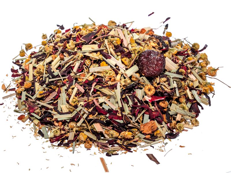 Травяной купаж плодов шиповника, цветов ромашки, гибискуса и лемонграсса. Для крепкого иммунитета, улучшения метаболизма и самочувствия. ———————— Чай "Долголетие" — это гармоничный травяной купаж, созданный для поддержания здоровья и долголетия. - Основным компонентом является плод шиповника, богатый витамином C, который укрепляет иммунную систему и способствует улучшению состояния кожи. Шиповник также содержит антиоксиданты, такие как флавоноиды, которые помогают бороться с преждевременным старением. - Цветы ромашки известны своими успокаивающими свойствами. Они содержат апигенин и хамазулен, которые обладают противовоспалительными и расслабляющими эффектами. Это делает чай отличным выбором для снятия стресса и улучшения качества сна. - Гибискус, с его ярким красным цветом, богат антоцианами и витаминами A, C и E. Он способствует снижению артериального давления и улучшает обмен веществ. - Лемонграсс, содержащий витамины группы B и минералы, такие как магний и кальций, помогает улучшить пищеварение и обладает освежающим ароматом. Этот уникальный состав делает чай "Долголетие" не только вкусным, но и невероятно полезным. Не упустите возможность купить оптом этот чудесный напиток для своего магазина и предложить клиентам натуральное средство для поддержания здоровья! Комментарии к товару