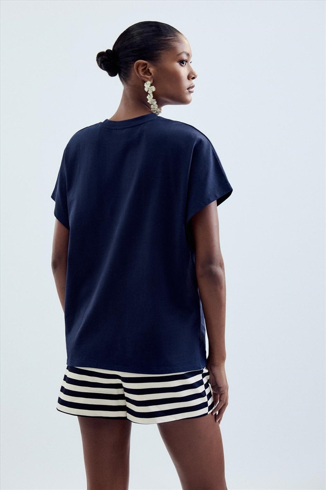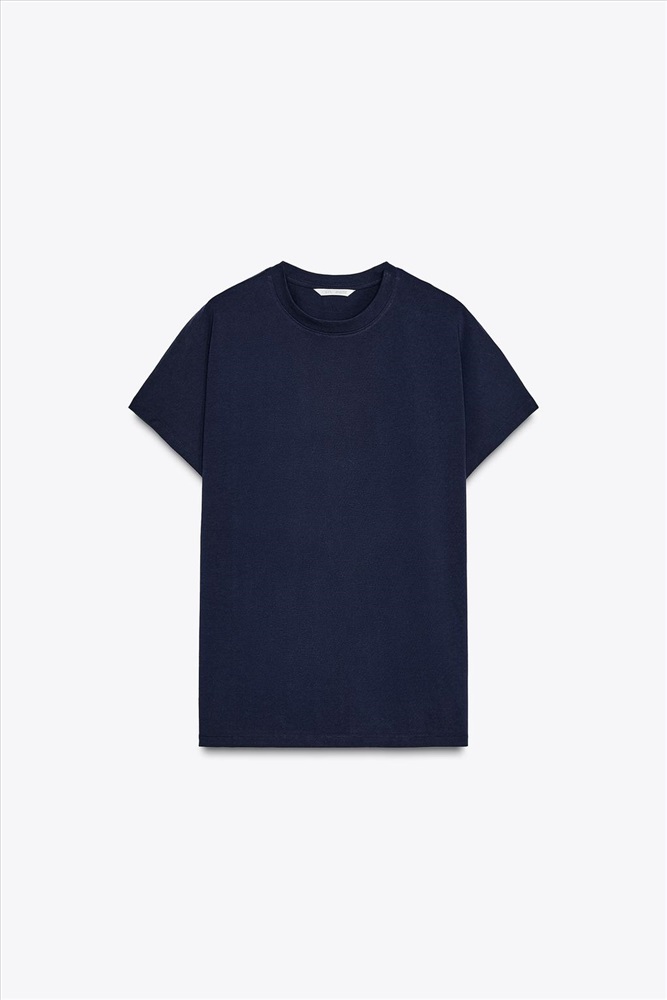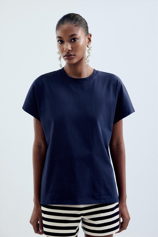Cotton T-shirt. Round neck and dolman short sleeves.