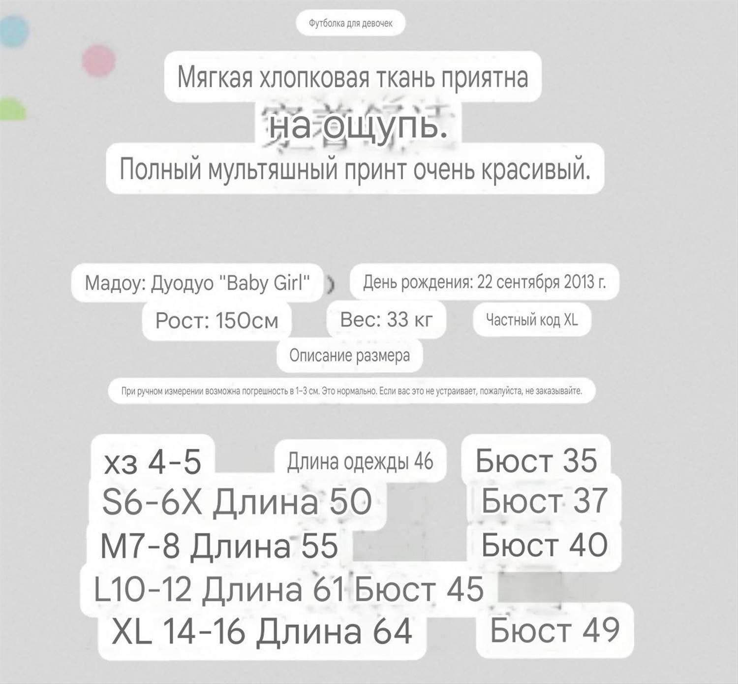 Размер: XS (4-5лет) S M L XL(14-16лет) (см последний скрин)