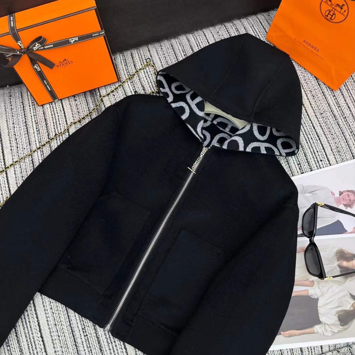 двусторонняя кашемировая куртка с жаккардовым капюшоном и логотипом