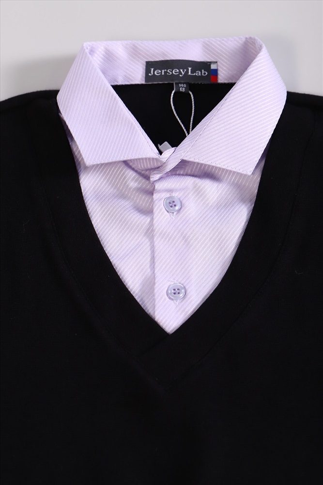 ID товара: 901715 Состав: 95% Хлопок, 5% Эластан Сезон: Весна/Лето Длина: Средняя Фасон: Классический Рукав: Длинные, короткие Вид застежки: Пуговицы Вырез горловины: Отложной воротник Основная ткань: Хлопок Стиль: Повседневный Вид ткани: Кулирка с лайкрой Страна бренда: Россия Страна производства: Россия Джемпер-обманка Jersey Lab с длинным рукавом одновременно сочетает в себе 2 предмета гардероба: джемпер в классическом стиле и имитацию рубашки, с застежкой на пуговицы. Рубашку-обманку не нужно заправлять в брюки и она не выбивается из под одежды, как рубашка в классическом варианте. Изделия отшиваются из кулирки высокого качества пенье, низ рукавов и джемпера на манжете. Джемпер-рубашка - это оптимальное решение для создания стильных образов в школу и праздничных мероприятий. Джемпер для мальчика изготовлен из плотного хлопкового полотна, а воротник из рубашечной ткани. Обратите внимание - модель маломерит на 1-1,5 размера! Комментарии к товару
