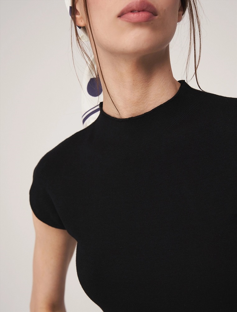 Видео: https-//hassfashion.ru/upload/iblock/aca/359cnuhxkwtmqo20lyljp9ie19xgmomh.mp4 осень-зима 50% хлопок,35%акрил,10% кашемир, 5%шелк. Вязаный джемпер регулярного силуэта с короткими рукавами и воротником. Выполнен из хлопка и акрила с добавлением кашемира и шелка, обеспечивающих тепло, мягкость и комфорт. Представлен в черном и бордовом цвете.